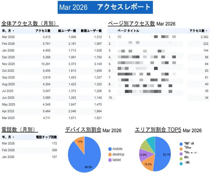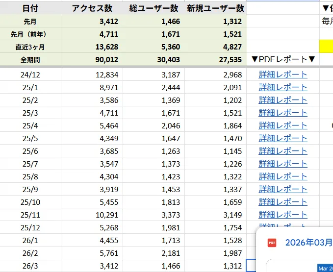 ※アクセスレポートはスプレッドシートでいつでも確認でき、PDFでのダウンロードにも対応しています。