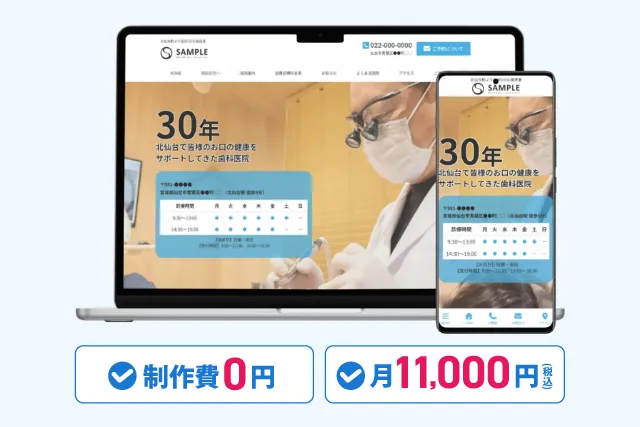 制作費0円・月額1.1万(税込)のシンプルな料金体系