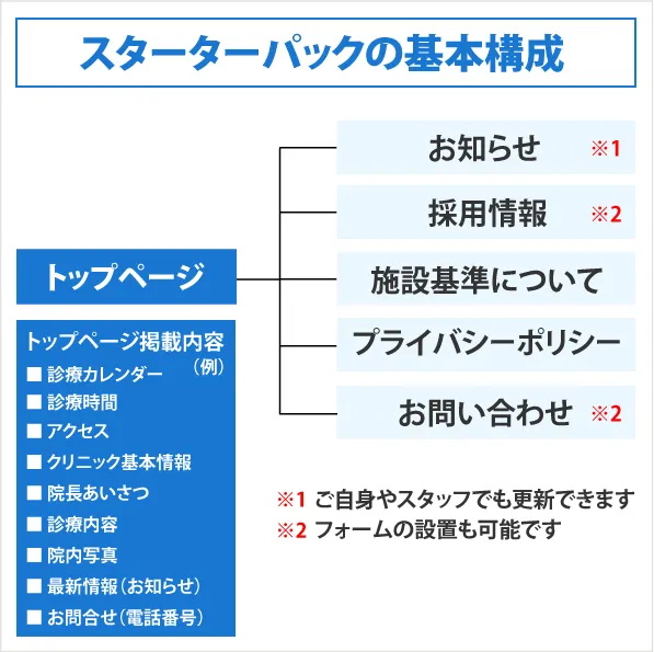 ※スターターパックのページ構成は、診療内容や運用方針に応じて個別に調整する場合がございます。